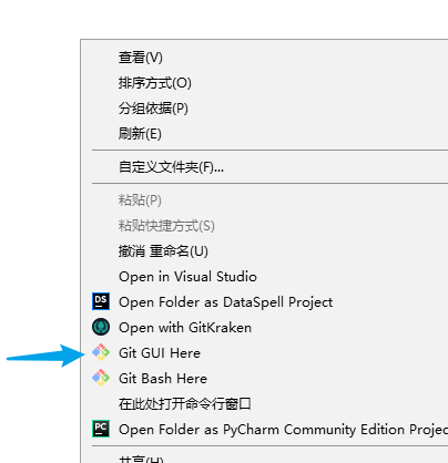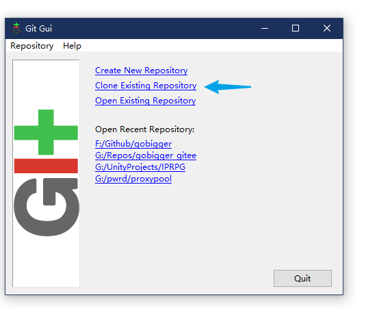 2.在任意文件夹位置 右键- Git GUI here | 然后选择Clone Existing Repository