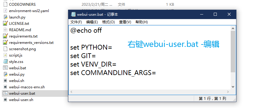 因此我们可以进行一些额外设置,右键webui-user.bat点击编辑