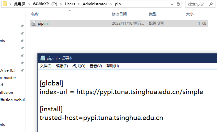 3.保存,关闭,重命名为pip.ini 点击确定 结果如下