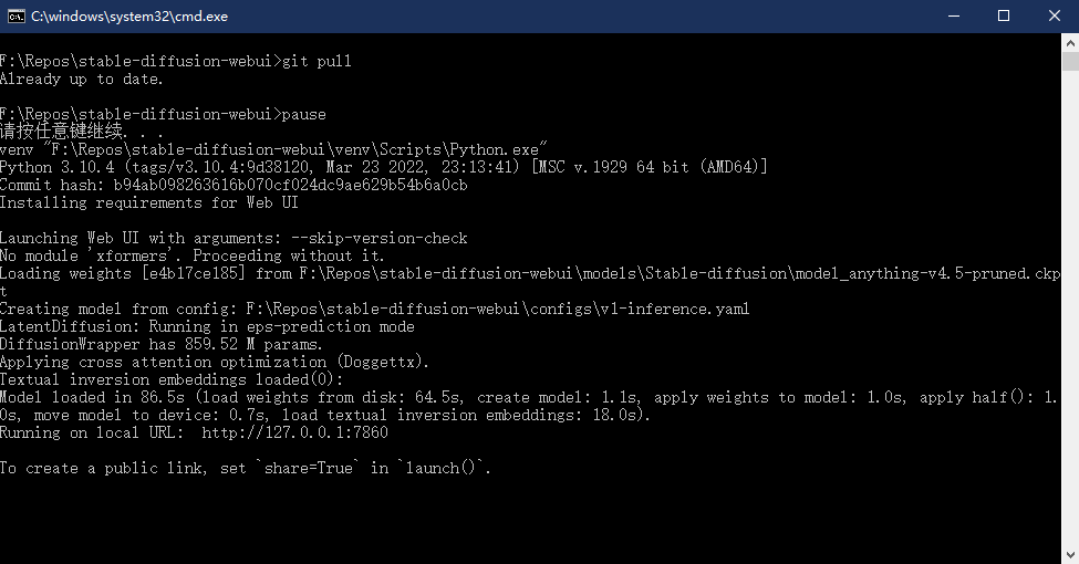 这是我们只需要等待webui自行安装所有需要用到的文件即可
